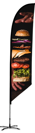 Banderas tipo Pluma Angular impresas "full color" a medida seguramente llamarán la atención de sus clientes.