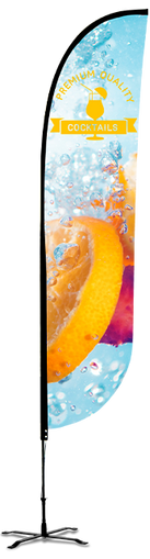 Banderas tipo Pluma Convex impresas "full color" a medida seguramente llamarán la atención de sus clientes.