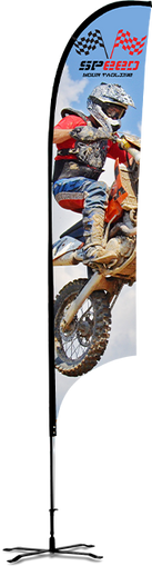 • Las Banderas tipo Gota o Teardrop son impresas ¡Ambos Lados! a la medida en poliéster de la mejor calidad,.